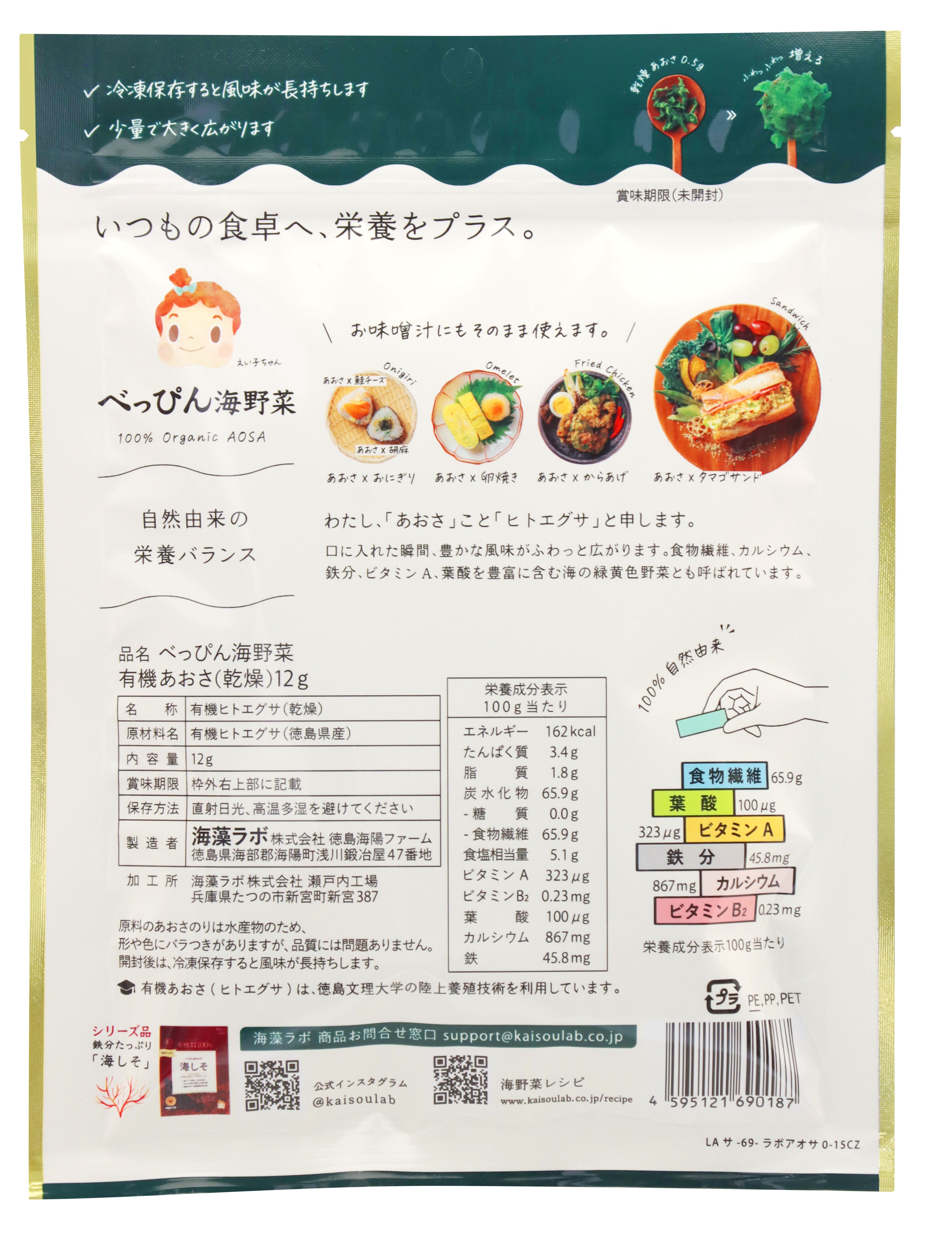有機あおさは、厳選されたオーガニックの海藻で、豊かな味わいと栄養価が魅力です。忙しい毎日でも、「手軽に取り入れられる健康食品」として、多くの方に愛されています。