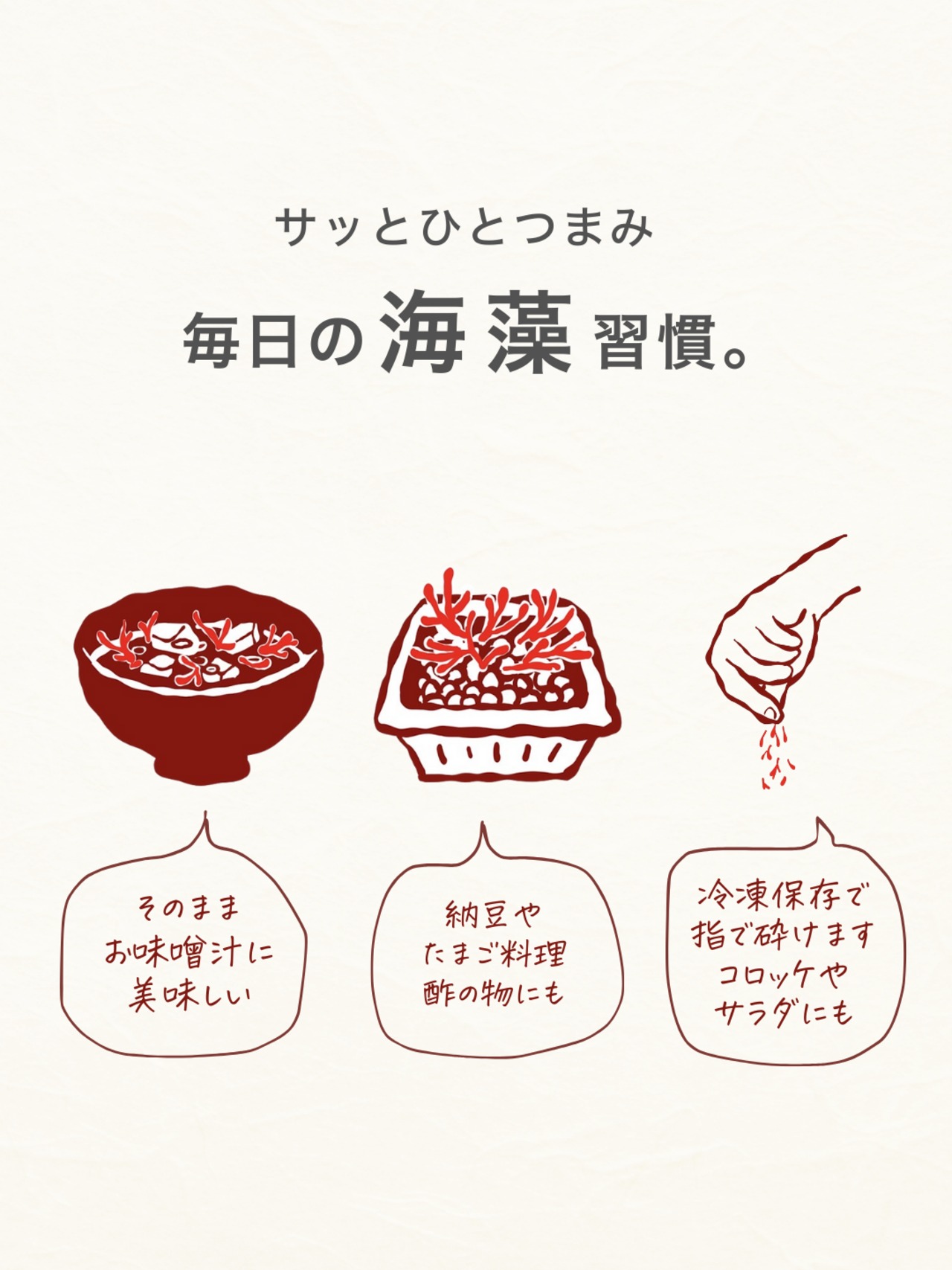 ミネラルたっぷりの海藻は、皆さまの食卓に栄養を。