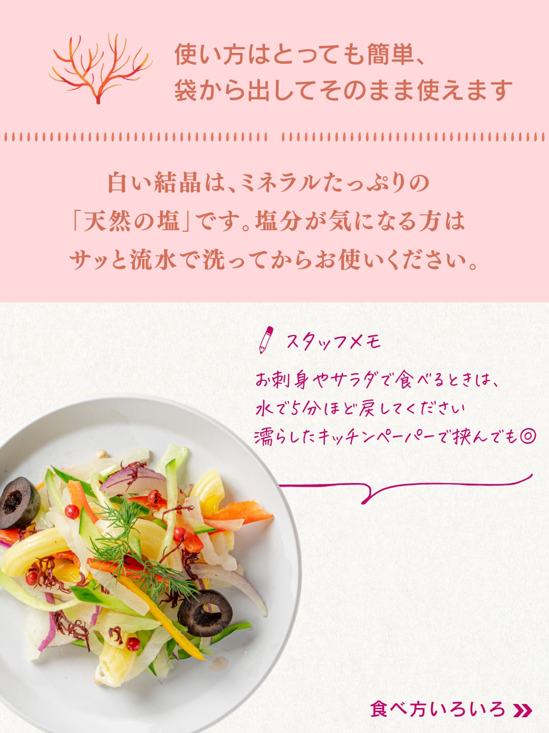鉄分補給のために取り入れている方からは、「ごはんに混ぜると食べやすい」との声も。ミネラル豊富な潮がついているため、さっと洗ってから食べる方もいれば、塩味を活かしてそのまま調味料の代わりに使う方も。ぜひレビューもご覧ください。
